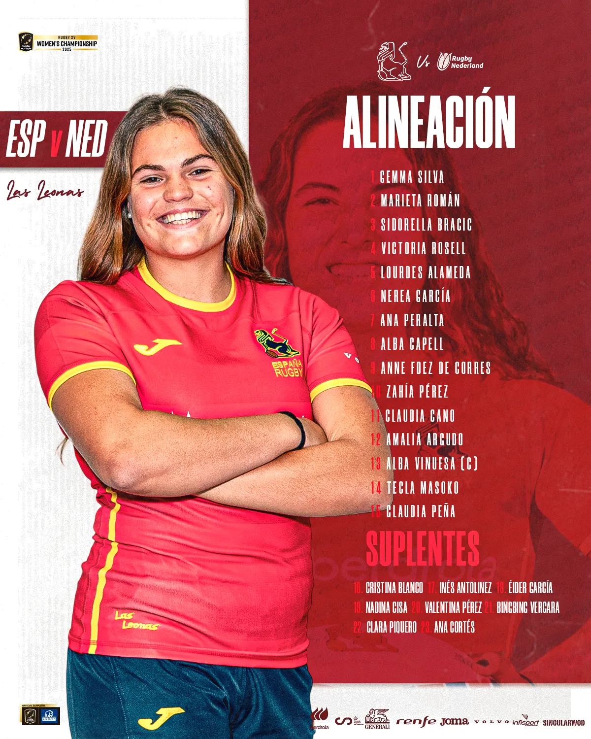La Selección Española de Rugby XV femenina afronta este sábado a las 16:00 (hora española peninsular) en el Estadio Nelson Mandela de Torrevieja el último encuentro del Campeonato de Europa ante Países Bajos. Una final para Las Leonas, en las que se decidirá si levantan su decimosegunda corona continental, que supondría ya la octava consecutiva para el combinado femenino nacional. Juan González Marruecos y su staff introducen 12 cambios en el XV titular, en el que sólo repiten respecto al encuentro disputado ante Suecia Alba Capell, Claudia Cano y la capitana, Alba Vinuesa.