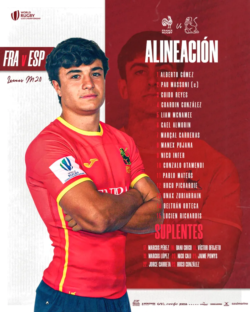 La Selección Española de Rugby XV M20 ya conoce a los 23 jugadores que disputarán el primer partido de Los Leones en el World Rugby U20 Championship 2025. Los españoles volverán a abrir su participación mundialista ante la poderosa Francia, tricampeona de la categoría y finalista en la última edición, el domingo 29 de junio a las 18:00, hora española peninsular, en el Payanini Center de Verona (Italia).