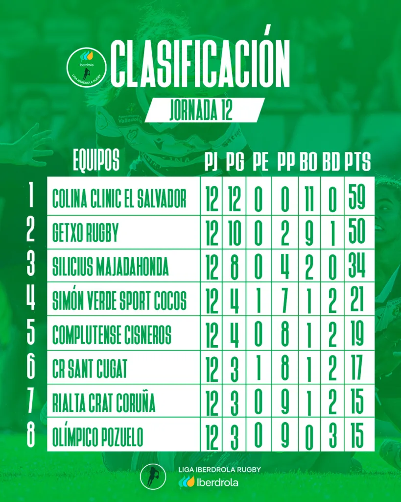 Getxo Rugby, por su parte, consolidó la segunda plaza tras superar al Olímpico de Pozuelo por 41-12 en Fadura. Las vizcaínas construyeron su triunfo desde el primer tiempo, con protagonismo de Ane Díez  y supieron mantener el control pese a varias expulsiones temporales que marcaron el desarrollo. El Olímpico sumó dos ensayos, pero no logró frenar la eficacia local.