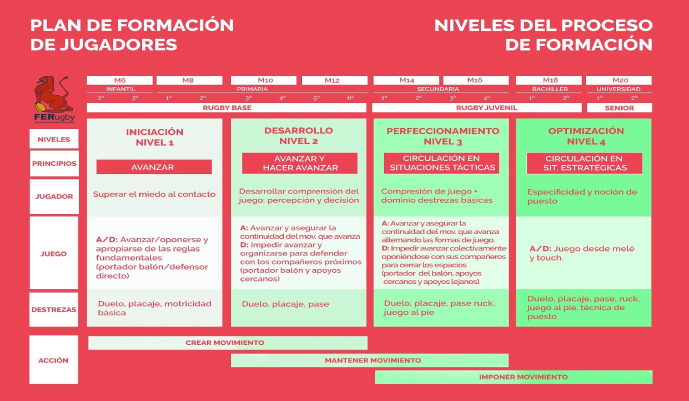 Desde el Área de Desarrollo de la FER constantemente se revisa, actualiza y completa el Plan de Formación de Jugadores. Además se crean regularmente numerosos recursos para facilitar la comprensión e implementación por parte de los educadores, y podrás acceder a todas estas herramientas desde este apartado.