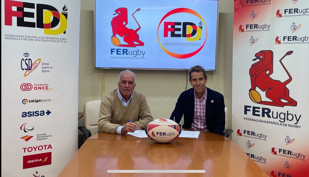 El presidente de la Federación Española de Deportes de Personas con Discapacidad Intelectual (FEDDI), Javier Gutiérrez, y el de la Federación Española de Rugby (FER), Alfonso Feijoo, firmaron este jueves un convenio de colaboración dentro del desarrollo del Plan Nacional de Rugby Inclusivo (PNRI).
