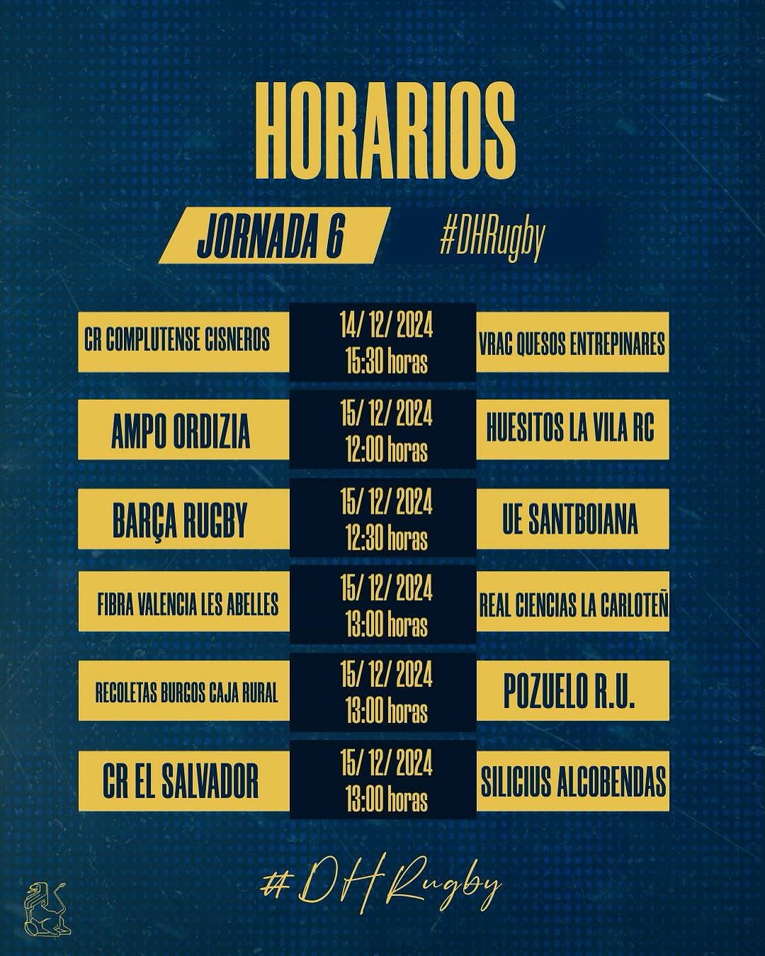 La División de Honor entra en su sexta y última jornada de 2024, marcando así el ecuador de la temporada con partidos que prometen ser apasionantes. En los ocho encuentros que se disputarán este fin de semana, destaca el derbi catalán que medirá al Barça Rugby y la Unio Esportiva Santboiana, reeditando así la segunda jornada de la NTT DATA Copa del Rey, donde los blaugranas se llevaron la victoria con un marcador de 24 a 21.