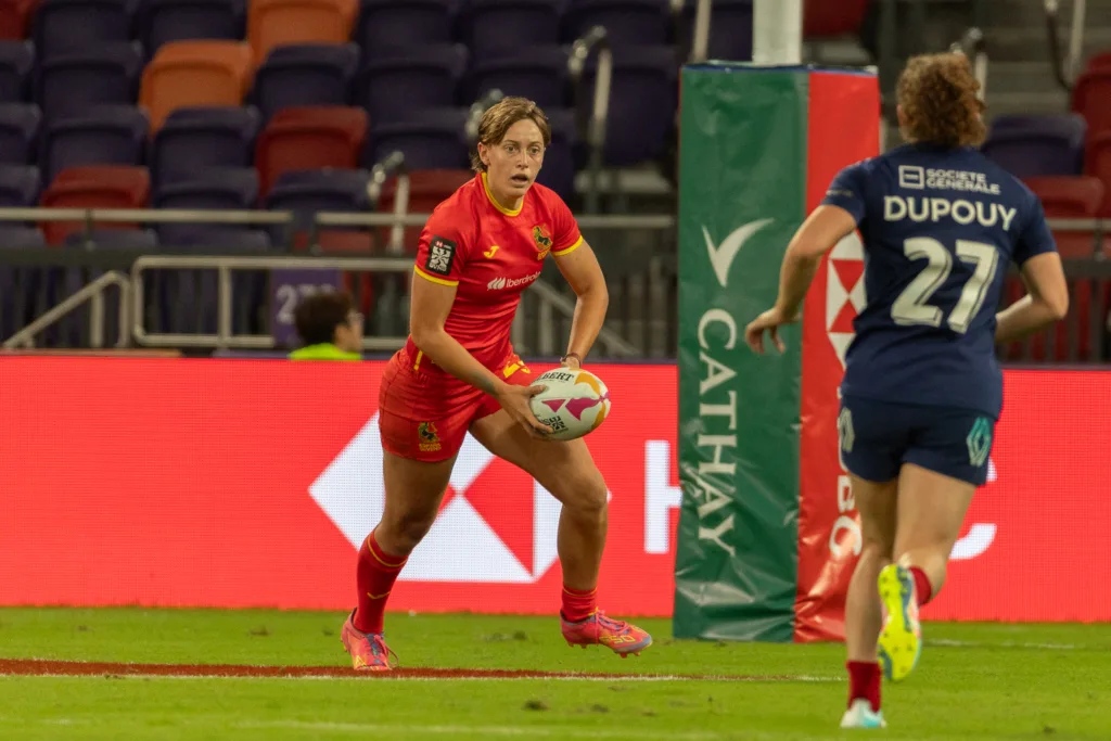 Derrota de Las Leonas7s en su primer partido del torneo ante USA por un marcador de 24 a 7 en un partido en el que Las Leonas7s comenzaron ganando cuando a mediados de la primera mitad Juana Stella culminó una gran fase ofensiva española para sumar el primer ensayo del torneo. La propia Stella transformó la conversión para el 7-0 inicial. El equipo estadounidense se vio sorprendido por el inicio de partido de Las Leonas7s, pero a los 5 minutos consiguieron empatar el encuentro y poco antes del descanso sumaron una nueva marca para el 7-14 al descanso.