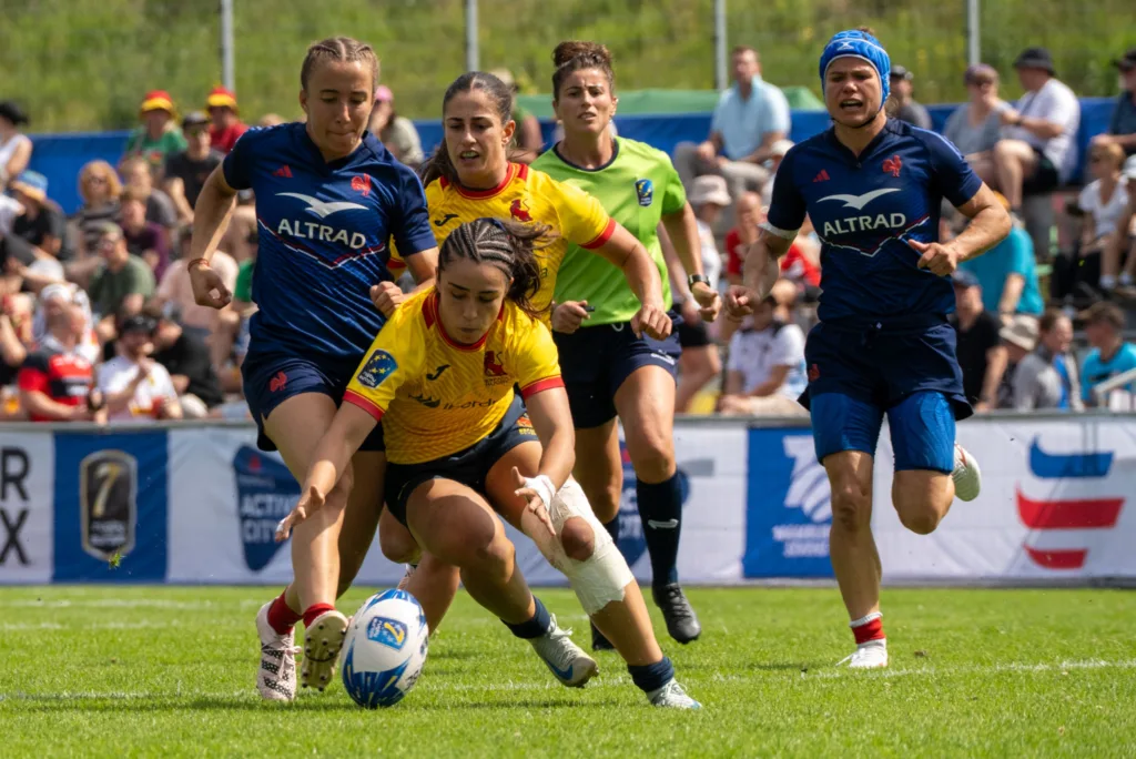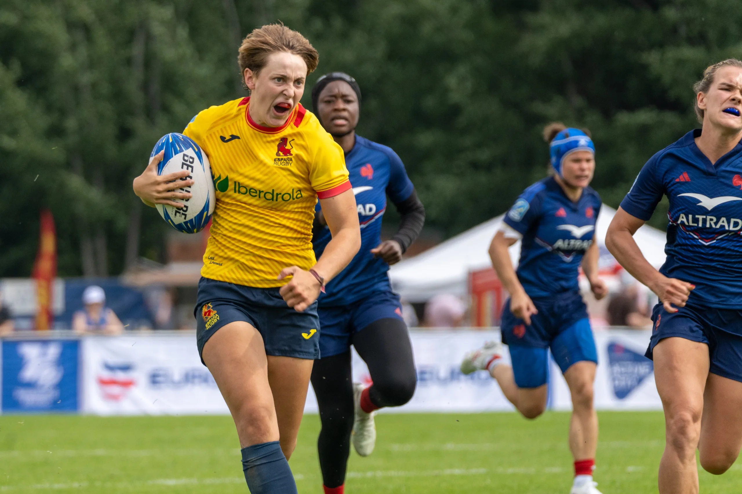 Marcador: Min 4 Ensayo y transformación de Francia 7-0 // Min 5 Ensayo de Juana STELLA 7-5 // Min 10 Ensayo y transformación Francia 14-5 // Min 12 Ensayo de Francia 19-5.