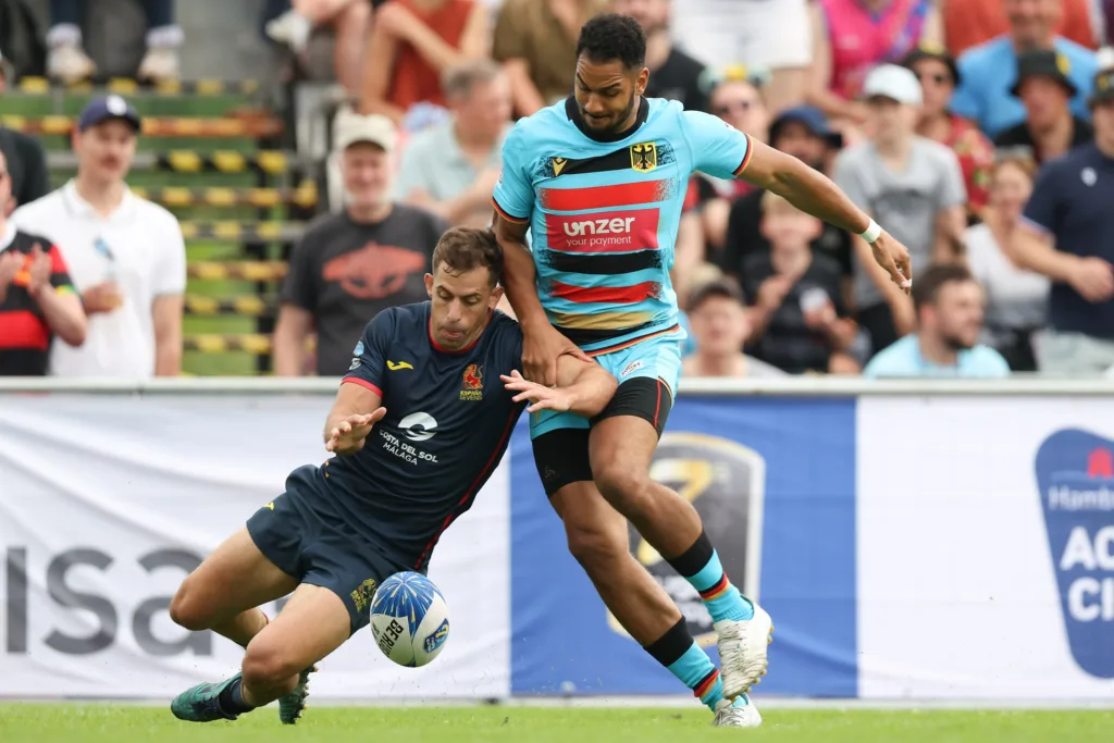 En el cuadro masculino, España completó su fase de grupos con pleno de victorias al imponerse a una buena Alemania 26-12. Tras una buena primera mitad teutona, 7-12 el resultado al descanso, los pupilos de Matías Tudela supieron imponer su mayor calidad para, con sus tres ensayos, clasificarse para los cuartos de final como la mejor primera.