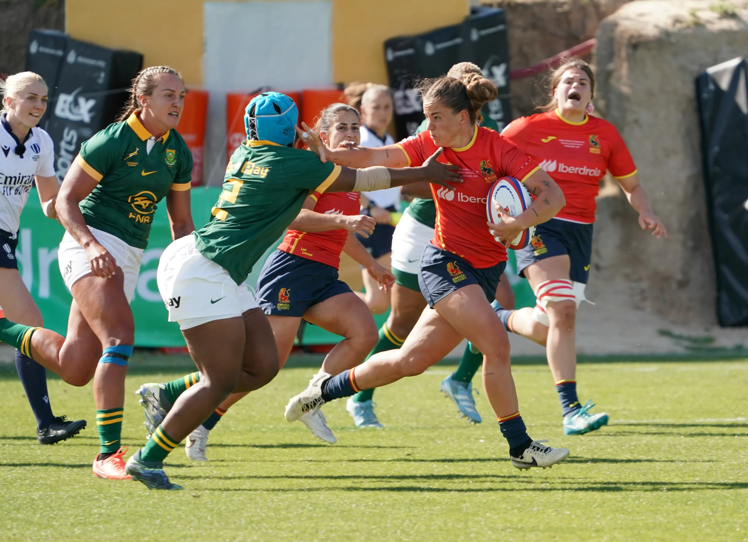 Marcador: Min 8 Ensayo Sinazo MCATSHULWA y transformación Jakkie CILLIERS 0-7// Min 23 Ensayo Aseza HELE y transformación Jakkie CILLIERS 0-14// Min 27 Tarjeta amarilla Amalia ARGUDO// Min 28 Ensayo Aseza HELE 0-19// Min 31 Ensayo y transformación Jakkie CILLIERS 0-26// Min 37 Ensayo Tecla MASOKO 5-26// Min 40 Ensayo Aseza HELE 5-31// Min 46 Ensayo Libbie JANSE RENSBURG 5-36// Min 56 Ensayo Tayla KINSEY y transformación Jakkie CILLIERS 5-43// Min 59 Ensayo Tecla MASOKO y transformación Amalia ARGUDO 12-43// Min 61 Ensayo Zahía PÉREZ y transformación Amalia ARGUDO 19-43// Min 65 Ensayo Yonela NGXINGOLO 19-48// Min 74 Ensayo Laura DELGADO y transformación Amalia ARGUDO 26-48// Min 78 Tarjeta amarilla Alica WILLEMSE// Min 79 Tarjeta amarilla Lourdes ALAMEDA.