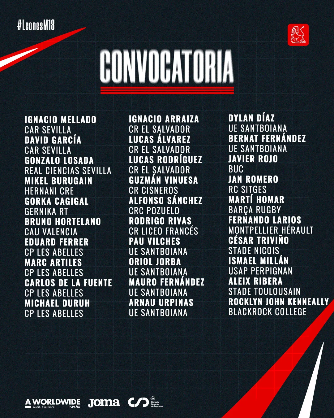 Esta convocatoria, formada por jugadores procedentes de distintos clubes nacionales e internacionales, refleja el crecimiento del rugby español en categorías de formación y la proyección de una generación que ha dado un paso al frente en el panorama europeo.