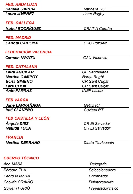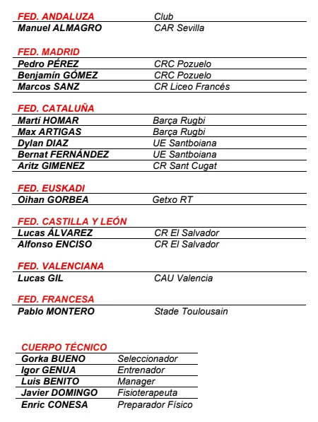 Por su parte, Los Leones7s M18 están encuadrados en el Grupo B del torneo masculino, completarán el sábado la fase de grupos jugando a las 11:12 frente a Luxemburgo, a las 15:06 ante la República Checa y finalizarán su primer día de competición a las 18:24 con Lituania. El domingo el equipo de Gorka Bueno jugará la fase final y para la ocasión el Staff técnico ha hecho la siguiente convocatoria:
