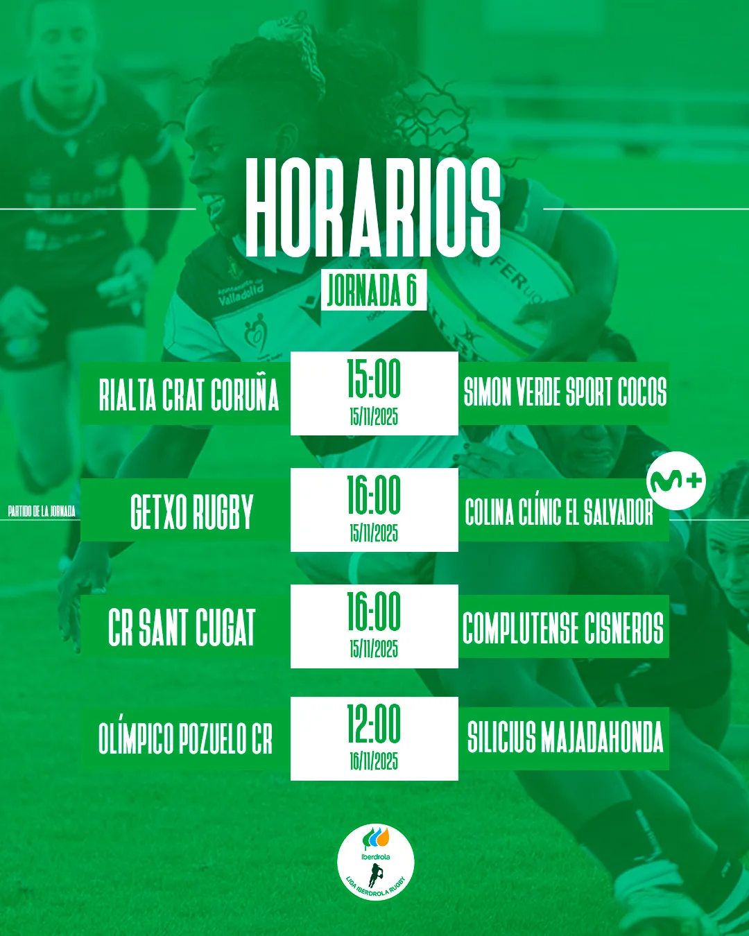 La sexta jornada de la Liga Iberdrola de Rugby llega con duelos directos y un líder que busca prolongar su racha perfecta.