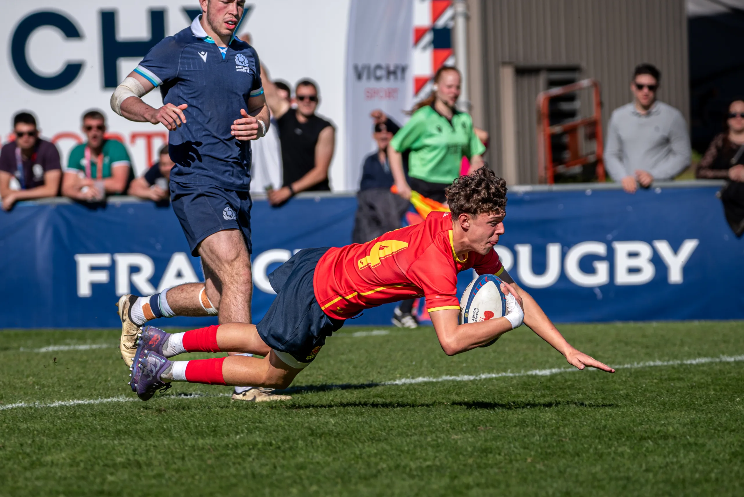 La Selección Española de Rugby XV M18 ha escrito una nueva página en la historia del rugby español, ganando en su estreno en el Festival 6 Naciones U18 el primer partido de una selección masculina nacional en el prestigioso torneo. Los de Sergi Guerrero y Suso Romero superaron en la tercera y última jornada por un claro 12-29 a Escocia, y fueron mandando en el marcador en todo momento, además de dominar tanto las fases estáticas como el juego abierto.