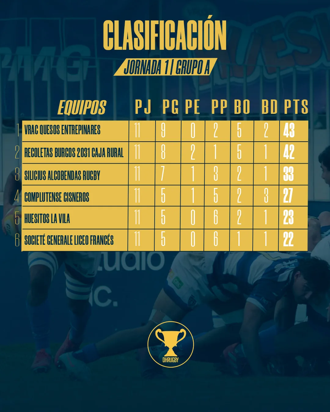 El partido más igualado del grupo se vivió en Las Terrazas, donde Silicius Alcobendas Rugby y Recoletas Burgos Caja Rural empataron 33-33 en un duelo intenso que mantuvo la incertidumbre hasta el final y dejó a ambos equipos sumando puntos en la pelea por las posiciones de playoff.
