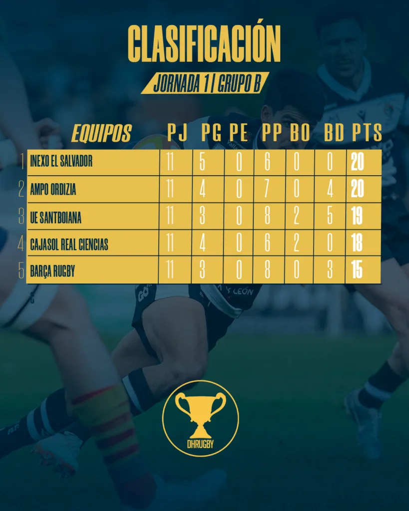 Con estos resultados, Inexo El Salvador y Ordizia lideran el grupo empatados a puntos, seguidos muy de cerca por Santboiana y Cajasol Real Ciencias, en una clasificación que anticipa una segunda fase muy abierta.