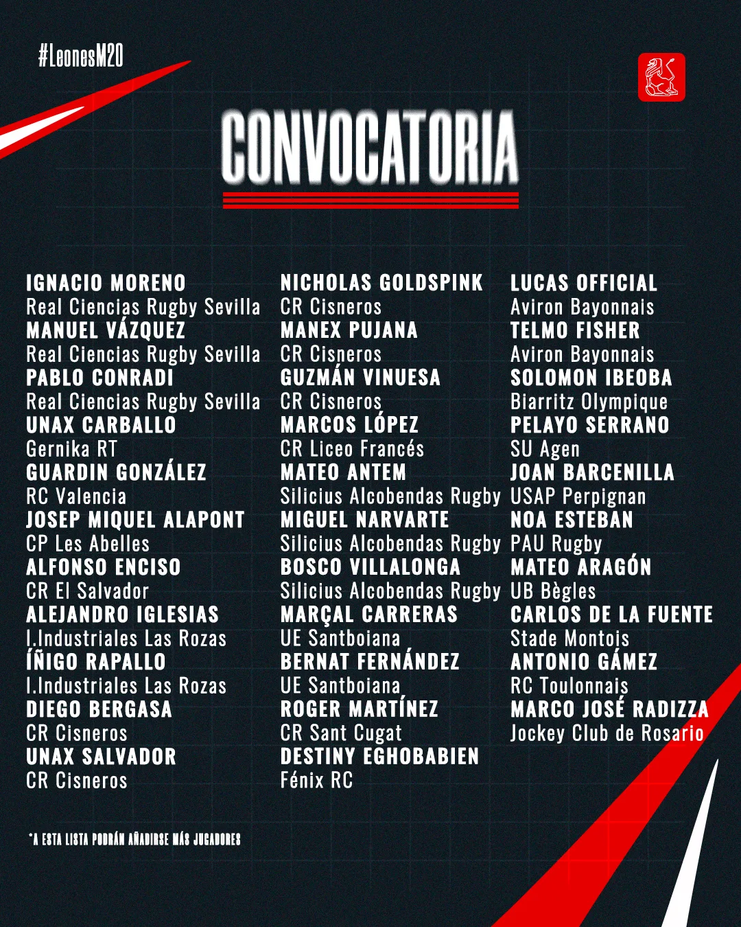 Esta será la primera de las diferentes concentraciones que realizará el combinado nacional M20 para preparar esa cita mundialista. Asimismo, el próximo martes 27 de enero, los Leones M20 disputarán un partido amistoso frente a Belgrano, uno de los clubes históricos del rugby argentino. El encuentro se celebrará en Alcalá de Henares y supondrá una exigente prueba competitiva para medir el nivel del grupo ante un rival de prestigio internacional.