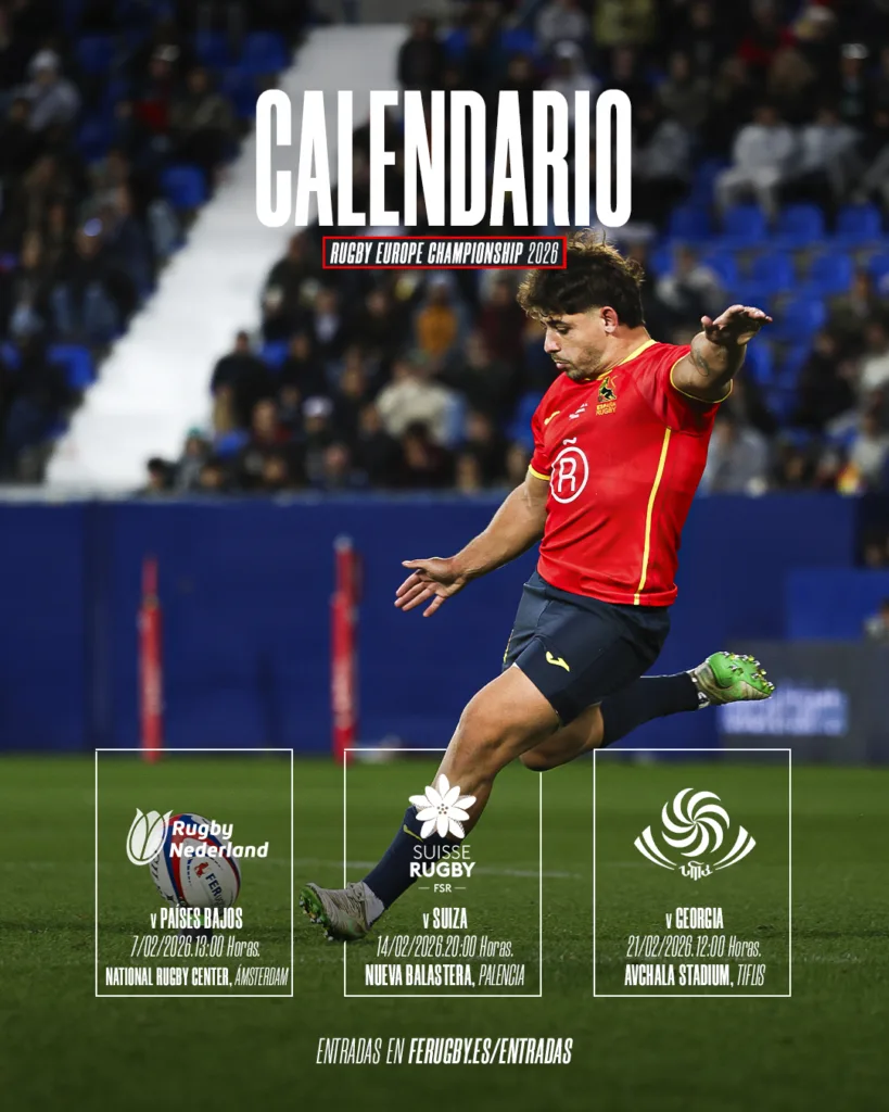 El debut de Los Leones llegará el 7 de febrero de 2026, a domicilio, frente a Países Bajos, en el National Rugby Center de Ámsterdam. Una semana más tarde, el combinado español vivirá su estreno como local el 14 de febrero, recibiendo a Suiza en la Nueva Balastera, en un encuentro que promete ambiente y emoción para el que las entradas ya están a la venta aquí.