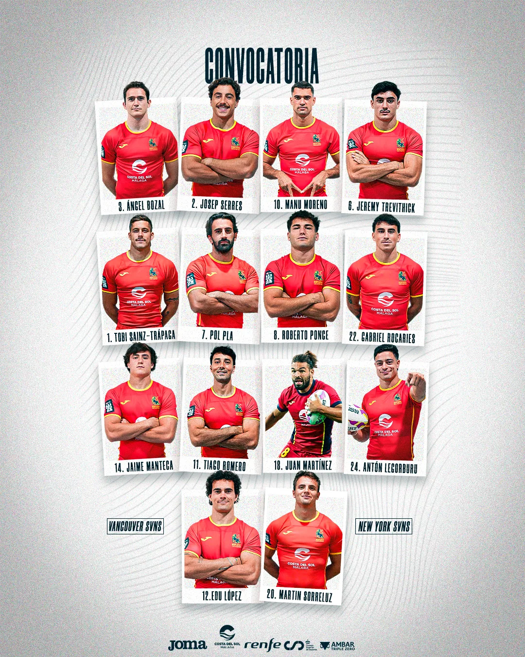 La Selección Española masculina de rugby 7, los Leones7s, ha hecho pública la convocatoria para afrontar las próximas dos etapas de las HSBC SVNS Series, que se disputarán en Vancouver (7 y 8 de marzo) y Nueva York (14 y 15 de marzo).