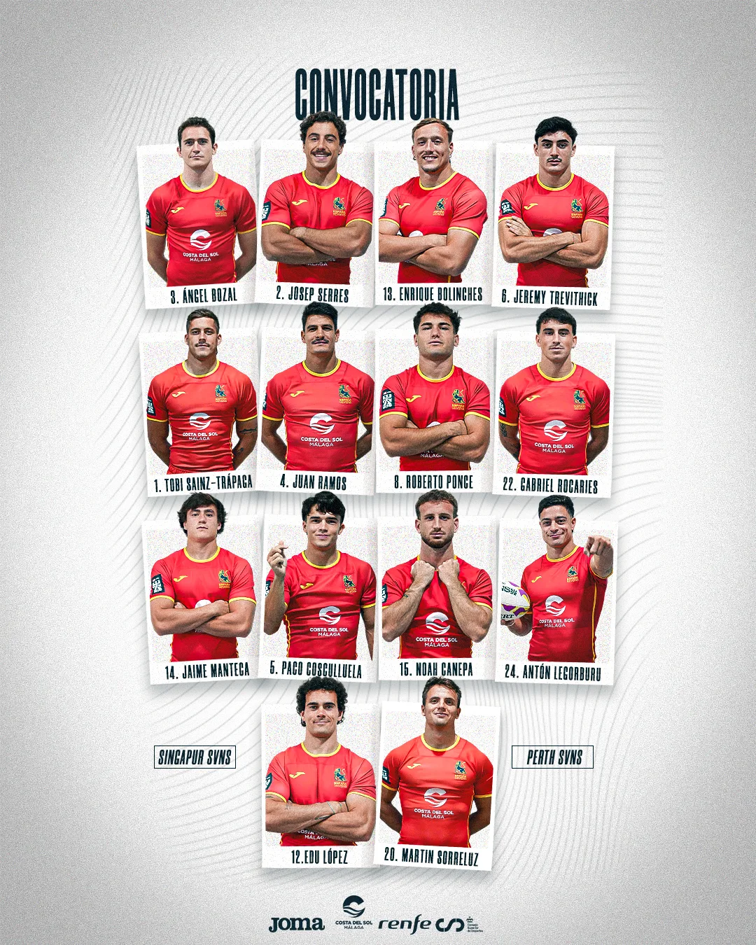 La Selección Española masculina de rugby 7, Los Leones7s, ya tiene definida su convocatoria oficial para afrontar las próximas etapas de las HSBC SVNS Series, que se disputarán en Singapur (31 de enero y 1 de febrero) y Perth (7 y 8 de febrero). Dos torneos clave dentro del calendario internacional en los que el combinado nacional buscará seguir consolidando su progresión en la élite mundial del rugby seven.