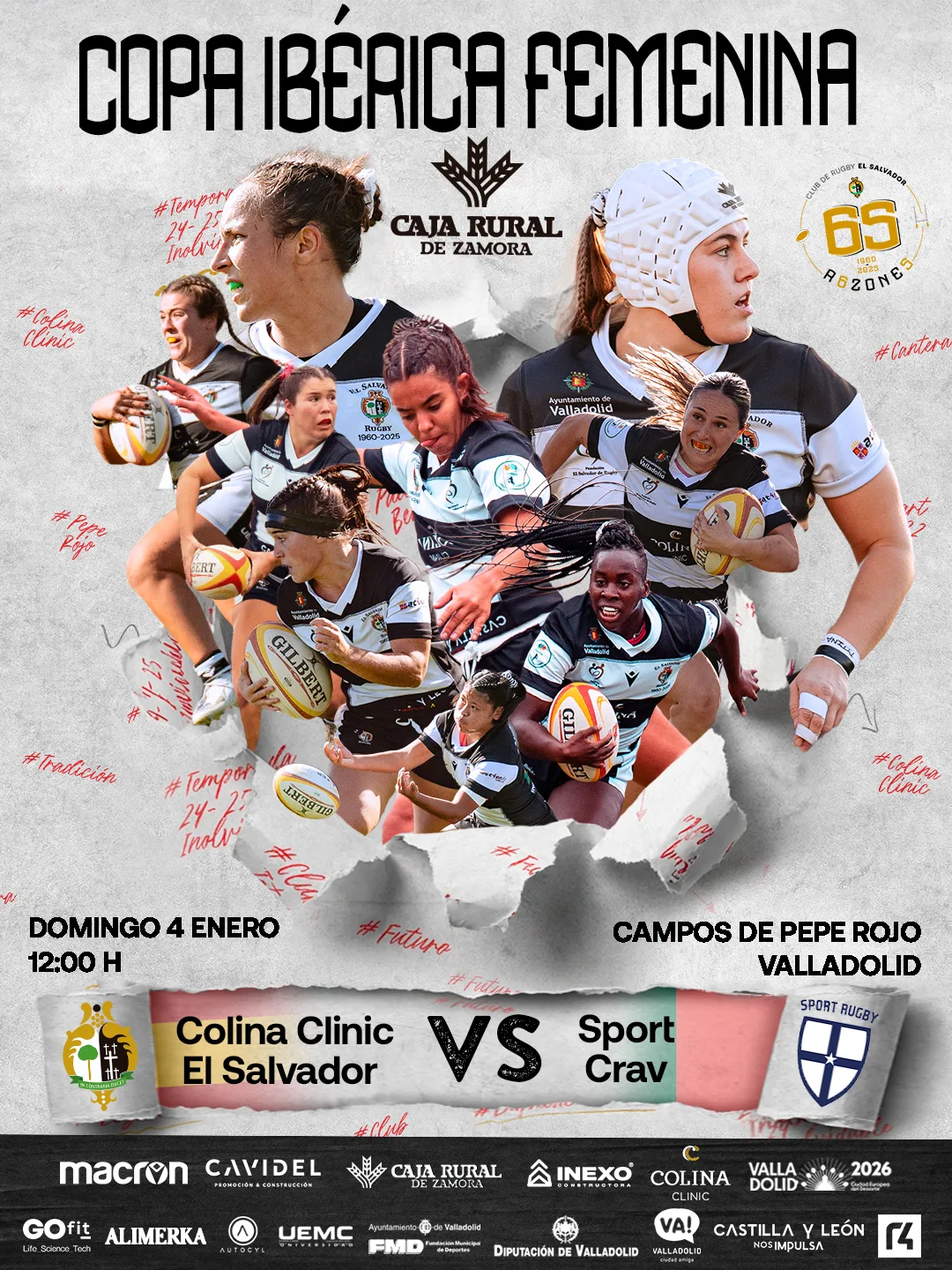 La Copa Ibérica enfrentará a Colina Clínic El Salvador y al Sport CRAV de Portugal el próximo 4 de enero en los campos vallisoletanos de Pepe Rojo, en un encuentro que supondrá un hito histórico tanto para el club anfitrión como para el rugby femenino nacional.