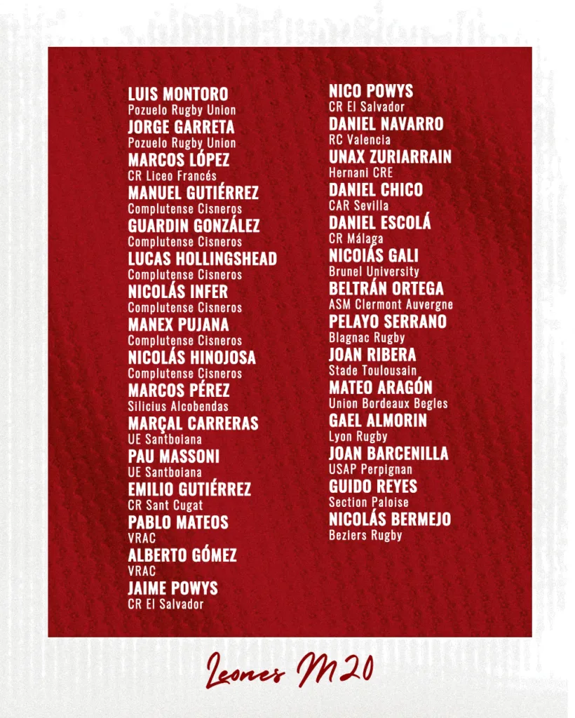 Seis jugadores de la actual convocatoria ya saben lo que es competir en un Mundial M20, ya que formaron parte del equipo que representó a España en Sudáfrica: Nico Infer, Pau Massoni, Alberto Gómez, Unax Zuriarrain, Nico Gali y Guido Reyes, quienes deberán traspasar la experiencia y buen hacer que les hizo conseguir la permanencia en el top-12 mundial.