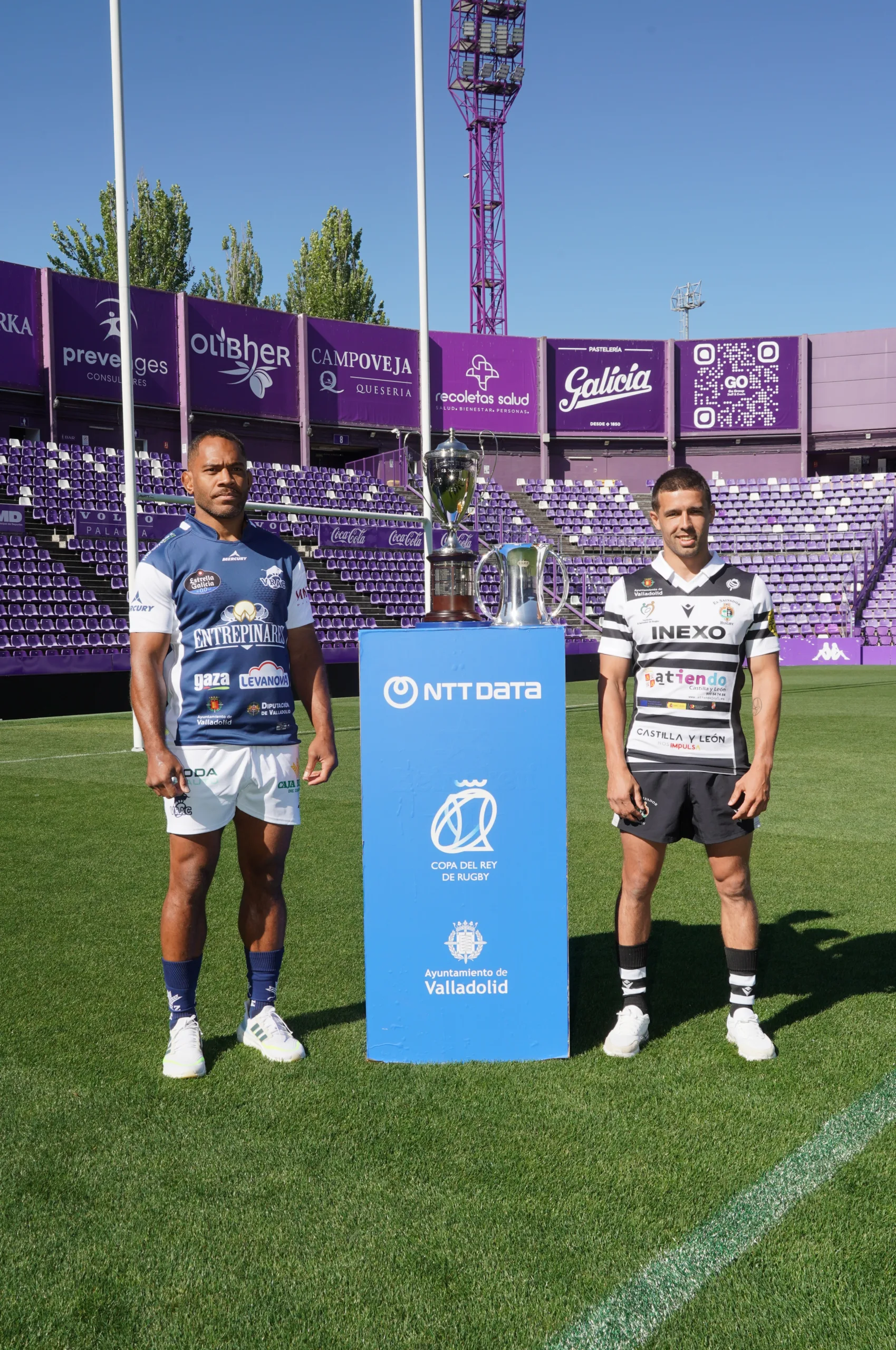 El césped del Estadio José Zorrilla, ya con los palos de rugby instalados, comienza a respirar ambiente de gran cita. El viernes, sobre el terreno de juego, ha tenido lugar la rueda de prensa previa a la final de la NTT Data Copa del Rey de rugby, que este sábado (16:00, en directo por Teledeporte) enfrentará a los dos colosos de Valladolid: INEXO El Salvador y VRAC Quesos Entrepinares.