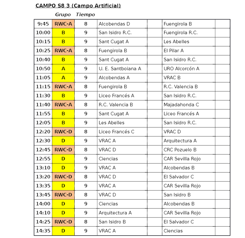 A continuación, pueden consultarse los grupos para el sábado y el domingo y los horarios para el sábado en el Festival Nacional S10, S8 y S6 2019.