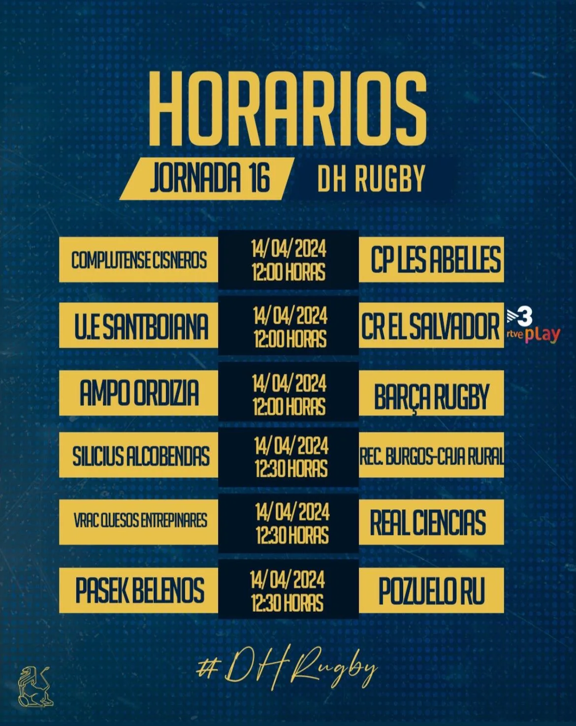 Puedes seguir todos los encuentros en directo en el canal de Youtube de la Real Federación Española de Rugby, a excepción del UE Santboiana – El Salvador que se emitirá en RTVE Play y TV3.