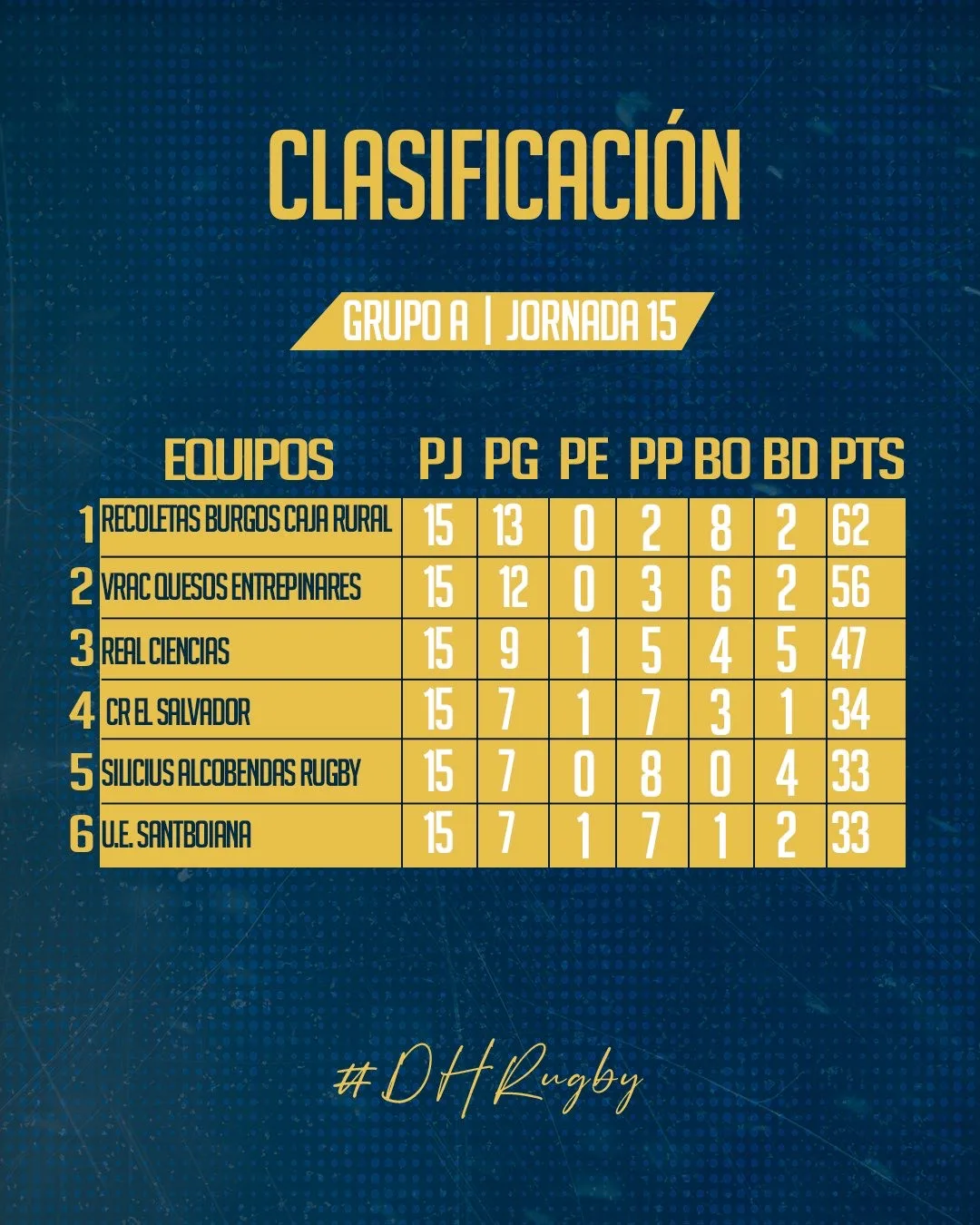 No podíamos pedir más. La Liga de División de Honor llega a su última jornada de la fase regular en su pico máximo de emoción. Y si bien en la parte alta los tres mejores se han asegurado ya sus puestos, a saber Recoletas Burgos-Caja Rural, VRAC Quesos Entrepinares y Silicius Alcobendas, por abajo hay equipos que podrían tanto entrar en play-offs como quedar relegados a disputarse su plaza en la promoción e incluso otros que podrían descender o salvar la categoría de forma directa.