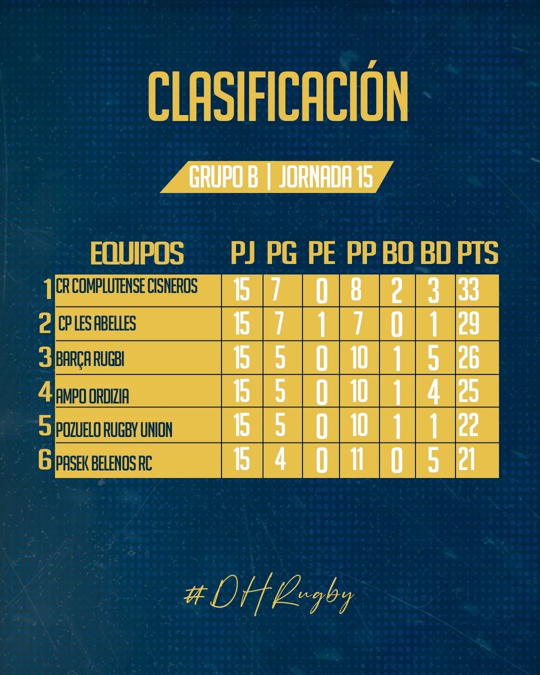 • Peleando por esa única plaza libre en los play-offs se encuentran Les Abelles (8º), Barça Rugby (9º) y AMPO Ordizia (10º).