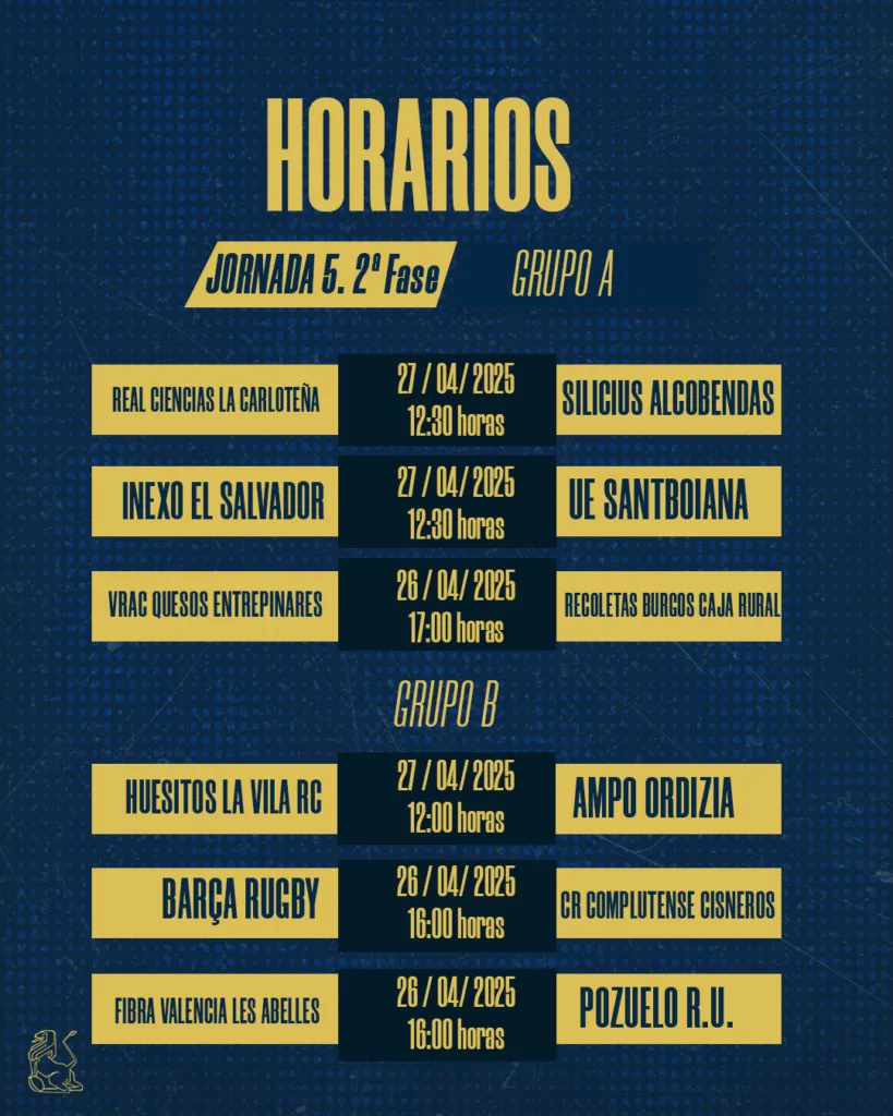 Los partidos con más implicaciones del fin de semana tendrán como protagonistas a los hombres que luchan por hacerse con el último puesto en los play-offs. Barça Rugby, con 31 puntos, depende de sí mismo, pero se enfrenta al conjunto más en forma de su grupo, un Complutense Cisneros que en esta segunda vuelta cuenta sus partidos por victorias, y que a la ida superó a los de la ciudad condal 27-20. AMPO Ordizia por su parte, con 29 puntos en la general, deberá esperar un resbalón de los catalanes, y además amarrar una victoria en su visita a Huesitos La Vila en Alicante, algo que a la ida sí consiguió arropado por su público 26-17.